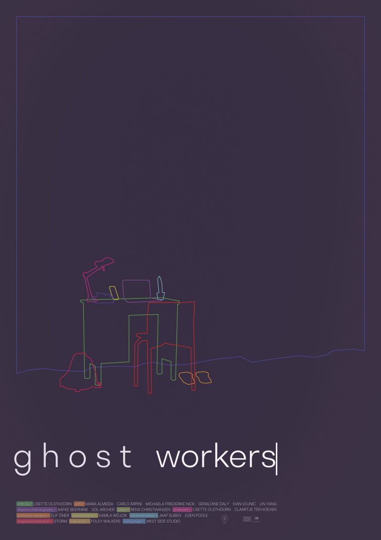 Ghost Workers is a cinematic research project into the people conducting the often hidden labor necessary to make artificial intelligence work. Working from home, not being recognized as a worker by the platforms that they work for and being misunderstood by family and friends all together creates strong feelings of isolation. Therefore, the filmmaker invited six workers from across Europe to share their work experiences with her and with each other. Focusing on the theme of isolation and recognition as a ‘real worker,’ the film engages in a collective conversation about this type of work.